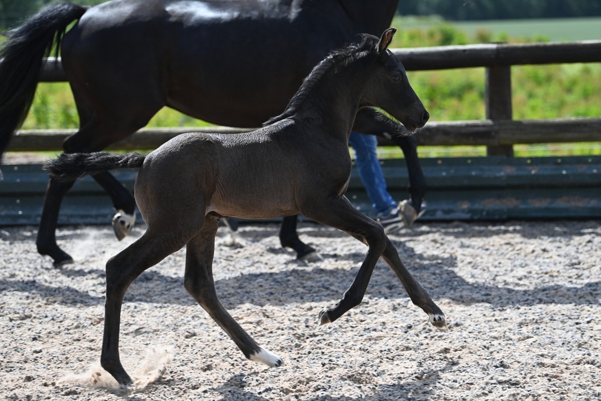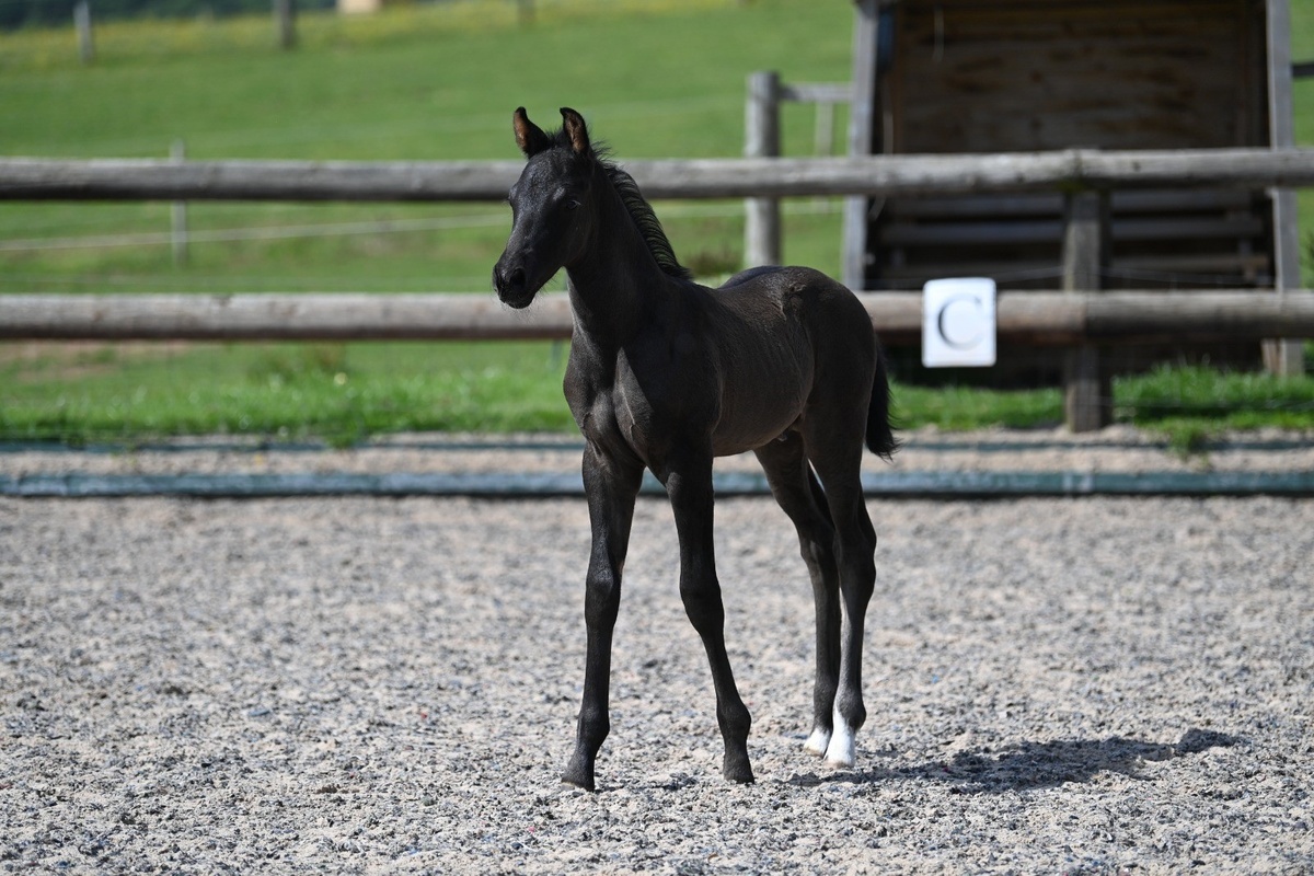 Duke is the one of Coverdale's second crops of foals, bred using the same bloodlines because we loved his sister Ru so much we thought we would try and replicate her qualities. We were not disappointed. He was quite a timid foal but exudes quality and movement. He is currently turned away with other colts and having fun, we often see them playing from the window which is such a beautiful sight to see. The plan with him is to asses him in the spring of 2025 and see if he posses all the qualities we would like from a breeding stallion.